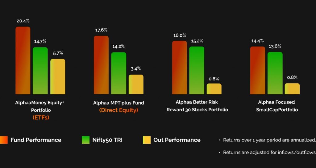 Alphaamoney PMS Portfolios have beaten the benchmark indices handsomely since its inception.